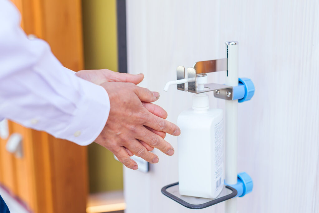 院内に消毒用アルコールを設置しております。ご来院時に手指の消毒をお願いいたします。