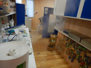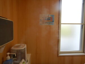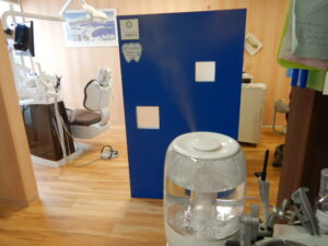 だ、だれもおれへん( ;∀;)名誉のために申し上げますが(誰の?)決して、受診する方が少なかったわけではありません。確かにほんの数人、本日の受診を控えられた方はいらっしゃいましたが、付き添いの方の人数をお一人までとさせていただき、さらにお車で待機していただいた結果、混雑する時間は全くなく、とてもスムーズに診療が進んでおります。(むしろ待合室でめちゃくちゃ頑張ってる殺菌水の噴霧器がちょっとシュールに見えるくらいです。)ちなみに待合室以外にも、各診療室ごと、また通路にもポイックウォーター(次亜塩素酸水)を噴霧しております。