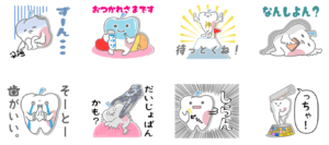 実は、かねてからの院トーテンテーの熱い要望により、この歯とりんごが合わさったようなキャラクター『歯さん』で、当院オリジナルのLINEスタンプを作ってしまいました!!その名も