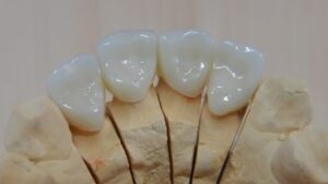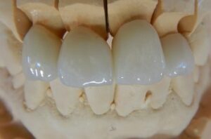↑内部にジルコニア、表面はセラミックを築盛、自然な色調も再現可能です。