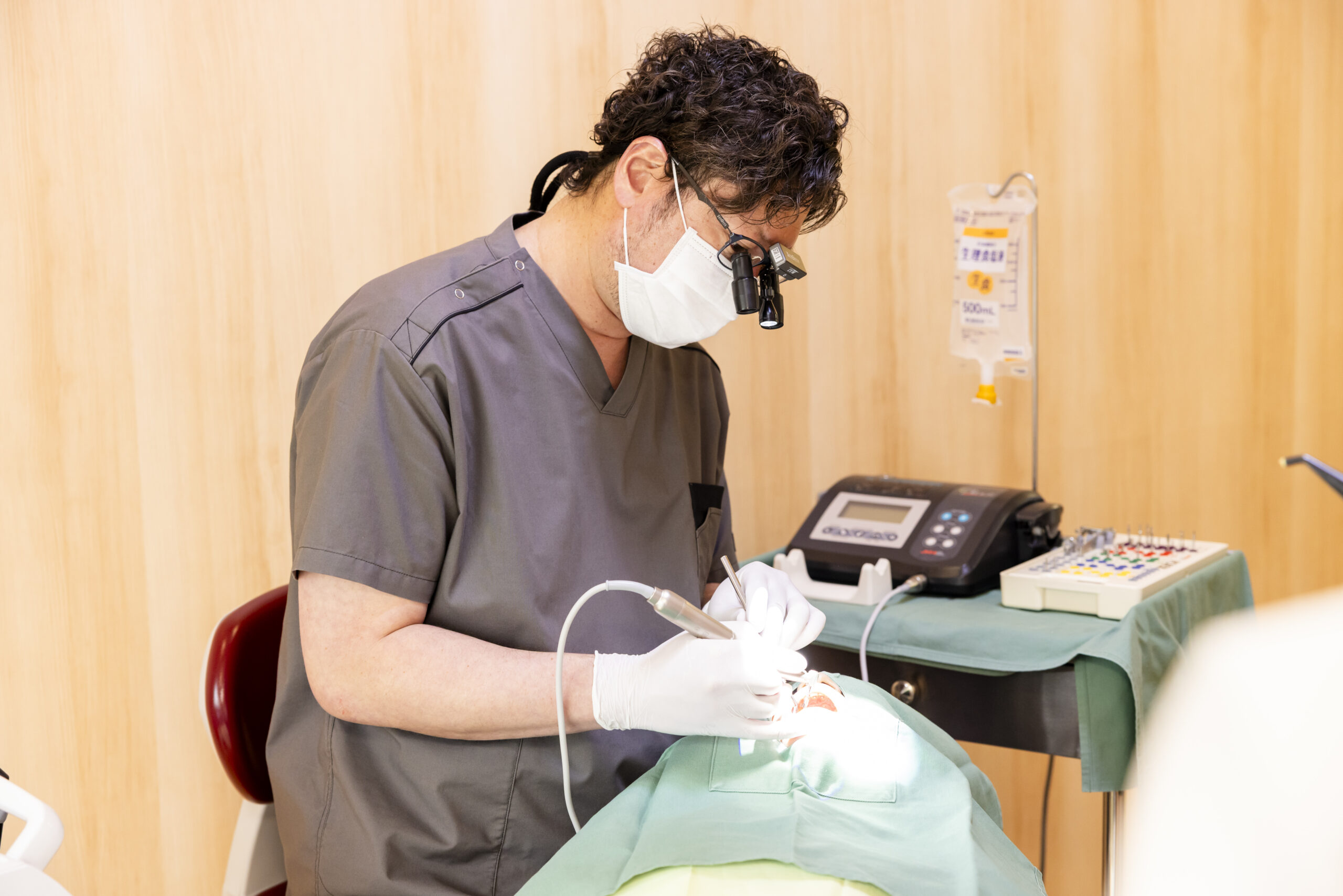毎日の歯みがきなどの“自宅ケア”はとても大切ですが、それだけでは磨き残しや歯石、見えない初期トラブルを完全に防ぐことはできません。だからこそ、定期的に“プロのメンテナンス”を受けていただくことが重要だと僕は考えています。専門の設備と技術で汚れをリセットし、むし歯や歯周病の早期発見にもつながります。また当院では、自宅ケアがより効果的に続けられるよう、一人ひとりのお口の状態に合わせた磨き方やケア方法を丁寧にお伝えしています。